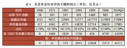 自2008年次贷危机后,养老基金的单边出货使得其持股市值的增长和股市上涨之间根本不成比例。到了2019年三季度,标普500指数较2008年的903点上涨了两倍多,市值从12万亿美元增长到最高超过40万亿美元(3.3倍),但养老基金持股市值仅从2.7万亿美元增加到最高5.8万亿美元(2倍),这说明它卖出美股是拉高出货的操作。
