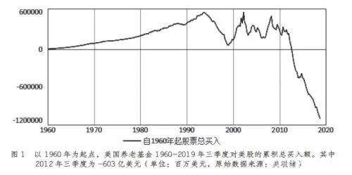 表2和图1中,养老基金的股票交易行为明显分为三个历史时期。从1960年到1994年长达35年的时间内,美国养老基金累计买入5736亿美元股票,最高突破6千亿美元,没有太多短期大卖大买的交易。在美元币值明显高企的情况下,每季度平均买入远远大于1995年以后的十多年,投资力度是很大的。