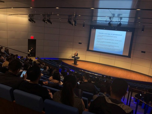紧接着,他围绕“中国模式的历史背景”、“中国崛起和未来发展”、“中国贡献和全球治理”三个主题,向在场的数百位听众解释了中国的政治、经济和社会模式,详解了中国政党制度的逻辑、选贤任能与协商民主的特征。他指出,中国模式取得了一系列成功,这包括中国有一个代表人民整体利益的政治力量;政府作用与市场作用较好的结合;中国历史上未发生过欧洲历史上那种宗教战争、贸易热战、种族战争等等。他强调,中国道路为全球治理提出了新的哲学逻辑与操作方法。他以中国的“一带一路”倡议为例,详细阐述了合作共赢思路下的新型全球化和全球治理民主化、他以中国的互联网革命为例阐述了民本主义导向的施政理念。张院长还就2018年的修宪、中国互联网治理、“一带一路”的意义、中国90后一代的发展机遇等接受了现场观众的提问,张院长的演讲和互动受到与会者的普遍欢迎。