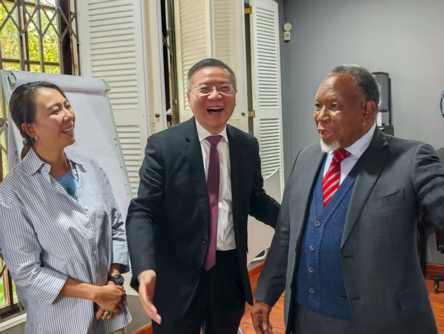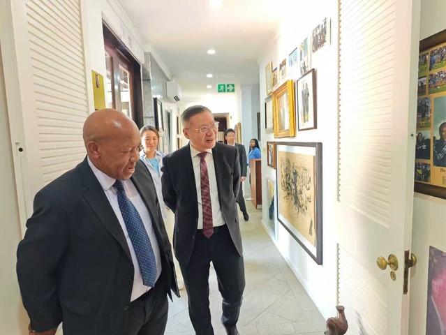 莫特兰蒂对张维为教授一行的到访表示热烈欢迎,并回顾了南中两国之间源远流长的友好关系。他提及曾与曼德拉共同遭受十年白人种族主义政权监禁的历史,感谢中国共产党和中国人民对南非反种族隔离、争取民族独立斗争的宝贵支持。他表示,张教授提出推动“合则兴”(unite and prosper)理念、拒绝“分而治之”(divide and rule)理念,这在非洲引起强烈共鸣,对非盟的共同理念建构具有重要启发,期待双方未来继续保持交流,为南中关系和非中全方位合作关系的深化贡献智慧和力量。