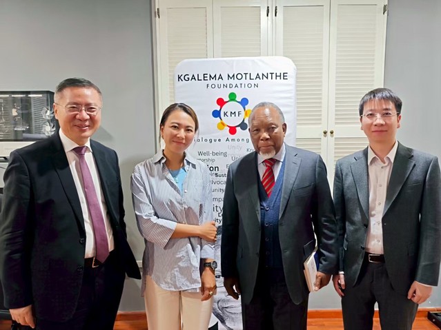 8月27日下午,南非资深政治家、前总统卡莱马·莫特兰蒂(Kgalema Motlanthe)在其基金会总部会见了国家高端智库理事会理事、复旦大学中国研究院院长张维为教授一行。