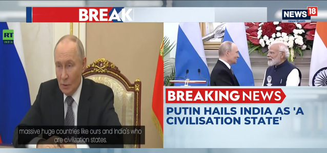 据今日俄罗斯(RT)和CNN-News18报道,俄罗斯总统普京近日在结束对印度的国事访问后,称赞印度体现了“多元一体”(unity in diversity),并强调印度与俄罗斯同属“文明型国家”。