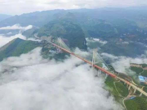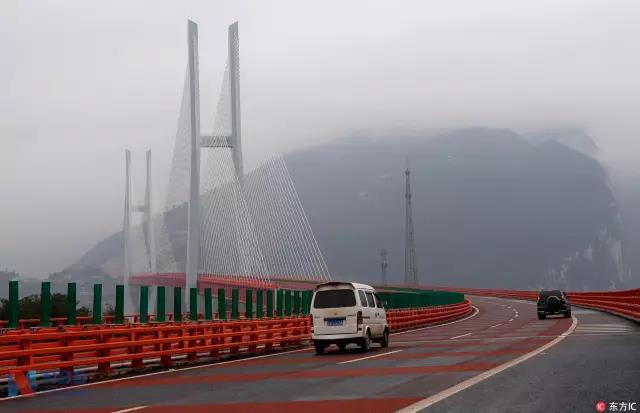 12月29日,横跨贵州省六盘水市都格镇和云南省宣威市普立乡的北盘江大桥正式建成通车。大桥由云贵两省合作共建,全长1341.4米,桥面到谷底垂直高度565米,相当于200层楼高——这也是目前世界上最高的大桥。