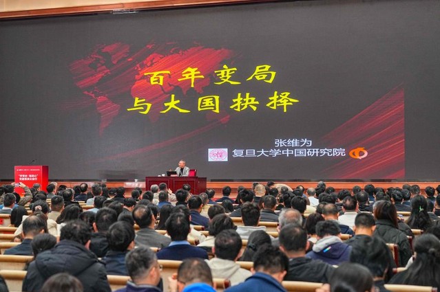 张维为教授以《百年变局与大国抉择》为题作主题报告。他结合世界百年未有之大变局的时代背景,深入剖析国际格局演变趋势与中国发展机遇,用鲜活案例与深刻洞察为现场嘉宾带来一场思想盛宴,进一步深化了大家对国际格局的理解,激发了奋进新征程的责任感与使命感。