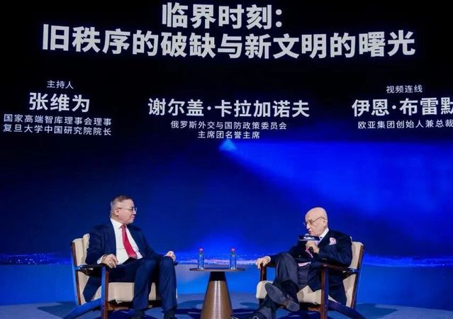 对话中,张维为教授与卡拉加诺夫就俄罗斯文明的独特性进行了深入探讨。张教授提及2024年圣彼得堡国际经济论坛上,卡拉加诺夫曾向普京总统提出“是否应在远东建立第三个首都”的尖锐问题,普京当时回应称,该提议有道理,但将通过市场力量等自然推动,该问题引发了俄罗斯国内的激烈讨论。他表示,卡拉加诺夫是欧亚文明倡导者,普京也认为俄罗斯是“文明型国家”,而在许多人眼中,俄罗斯常在亲西方、亲欧洲与欧亚主义之间摇摆,并就此向卡拉加诺夫提问:“俄罗斯在多大程度上是独特文明?”