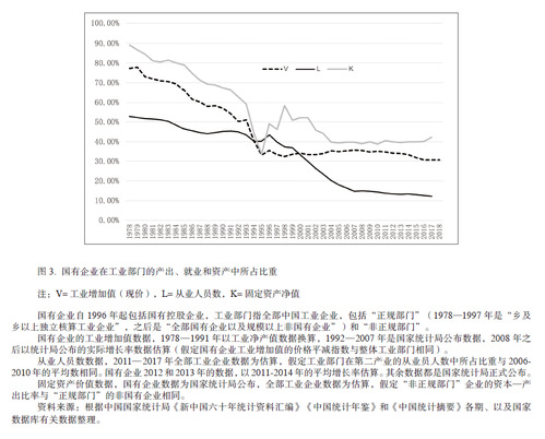 然而,在此期间,国有企业从业者人数占整体工业部门从业者人数的比重节节下降,从1978年的53%降至1992年的45%、再至1997年的40%,随后这个比重并没有稳定下来,而是持续下降至2012年的13%。考虑到自1990年代中期的“下岗增效”运动之后,国企中已经是雇佣关系成为主导,劳动者很大程度上丧失了过去的主人翁态度,可以判断,在企业层面上中国政治经济的社会主义追求已经是很难体现了。
