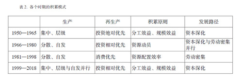 在社会主义或资本主义根本制度与经济发展之间,必然存在着一系列政治经济的结构特性和体制安排,作为特定的发展路径或积累模式的基础,同时也就塑造了根本制度的演化。这个判断,是政治经济学中的美国“积累的社会结构学派”和法国“调节学派”的核心命题,同时也见于英国的“利润压榨学派”和日本的“宇野学派”。按照它们的理论,一个经济体的持续积累过程,不是简单的经济产出总量的扩展,而是社会生产和再生产各方面的互相配合,在这各方面的不断演变中至少在特定时段中能维持配合的稳定,使积累得以持续。所谓积累体系,大致上指向社会生产,而调节体系则指向社会再生产。(3)