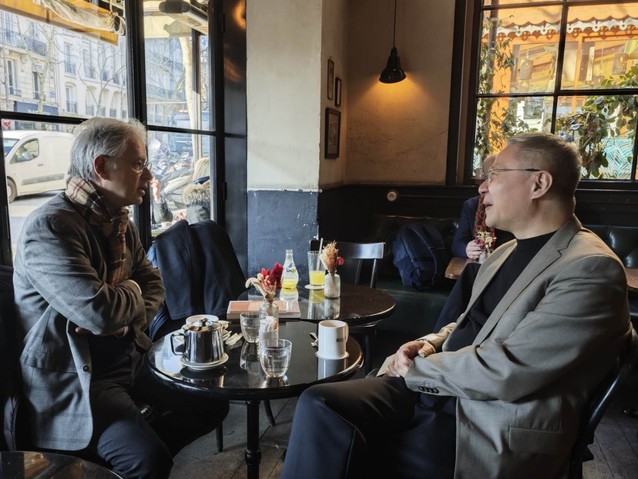 同日,张维为教授与巴黎和平论坛总干事贾斯汀·瓦伊斯(Justin Vaisse)先生举行了工作午餐。双方在亲切友好的气氛中,就中欧关系、绿色能源转型、科技发展与世界和平等议题交换了意见。张教授还会见了法国国际问题专家菲利普·勒科雷(Philippe Le Corre)先生,就中法经贸关系、特朗普2.0时期的美欧关系等议题交换了看法。