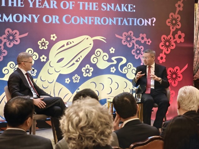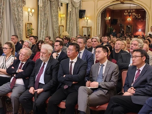 2月5日晚,正在塞尔维亚访问的国家高端智库理事会理事、复旦大学中国研究院院长张维为教授应塞尔维亚前外长、第67届联合国大会主席武克·耶雷米奇(Vuk Jeremic)邀请,在贝尔格莱德历史悠久的航天俱乐部礼堂举行了一场高端对话。本场对话以“蛇年:冲突还是和谐”为主题,吸引了150余位嘉宾出席,包括塞尔维亚前总理、外交部国务秘书等政要,塞尔维亚知识界和媒体界的资深人士,多国驻塞尔维亚大使、国际组织代表,以及中国驻塞大使馆高级官员与中资企业代表等。