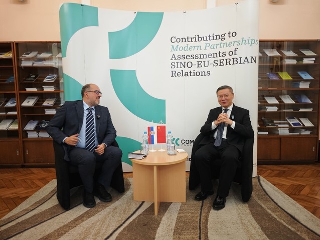 2月5日上午,正在塞尔维亚访问的复旦大学中国研究院院长张维为教授应邀前往国际政治与经济研究所(Institute of International Politics and Economics, IIPE),与20余位资深研究员围绕“中国-欧盟-塞尔维亚关系评估”主题座谈。双方就中国模式、中塞关系、中欧关系及塞尔维亚在中欧关系中的角色等议题展开深入交流。