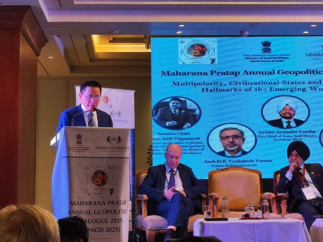 2月14—15日,由印度外交部和印度乌萨纳斯基金会(Usanas Foundation)联合主办的旗舰论坛“马哈拉纳·普拉塔普地缘政治年度对话2025”(MPGAD 2025)在印度拉贾斯坦邦首府斋普尔顺利举办。本次年会以“构建明天,打造未来”为主题,来自印度、中国、孟加拉国、俄罗斯、美国、阿联酋、以色列、丹麦的四十多位政界、学界和媒体界代表围绕多极化世界、文明型国家、科技革新、区域安全、人工智能等议题展开了热烈深入的讨论。复旦大学中国研究院副院长吴新文教授受邀参加论坛,并在2月14日的“新型世界秩序的特点:多极化、文明型国家和技术”会场做专题发言。