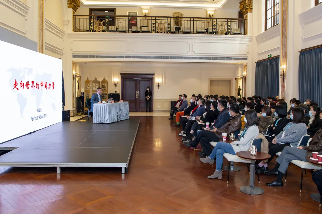 张教授从中国崛起、中国突破和中国模式的成功之路、百年未有之大变局等几方面,为大家展示了中国的快速成长和变革。通过中美之间经济和社会现状的比较为大家阐释了当今国际形势下的中国实力。同时,张教授联系中国文化,援引了近期舆论关心的话题,讲授了中国价值观的世界意义,以及年轻一代对中国文艺复兴的重要影响。讲课的最后,大家一起观看了张教授在NEXUS思想者大会上的视频《思想者的歌剧》。