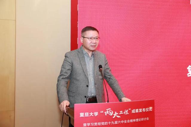 12月19日下午,“两大工程”一期成果20本著作在复旦大学“两大工程”成果发布仪式暨学习贯彻党的十九届六中全会精神理论研讨会上正式揭幕。上海市委常委、宣传部部长周慧琳,复旦大学党委书记焦扬,上海世纪出版集团党委书记、董事长黄强在“两大工程”成果发布会上致辞。复旦大学党委常务副书记裘新主持。
