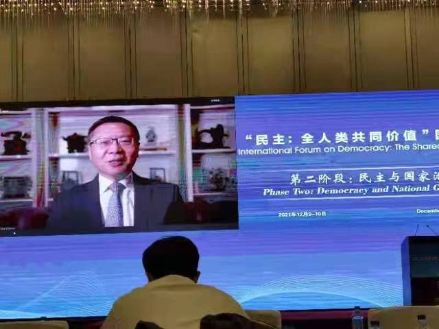 张维为教授应邀通过视频参加了“民主:全人类共同价值”国际论坛。论坛由中共中央宣传部、国务院新闻办公室主办,中国社科院、中央广电总台、中国外文局承办,12月4日至5日、9日至10日、14日至15日分三个阶段在北京举行。来自70余个国家和地区的前政要、政府部门代表、国际组织的重要代表、智库专家学者以及媒体代表等,通过线上线下相结合的方式,围绕这一阶段会议的主题——“民主是全人类共同价值”展开对话。