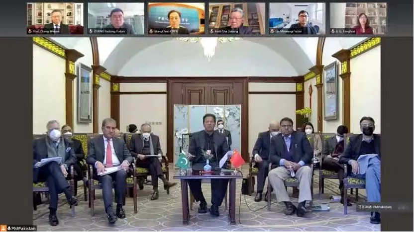 2月4日下午,中国研究院院长张维为教授应邀参加了与巴基斯坦总理伊姆兰•汗(Imran Khan)的视频对话会。伊姆兰•汗总理在参加冬季奥运会开幕式前夕与中国智库资深专家围绕中巴双边关系及有关的国际问题进行了深入交流。伊姆兰•汗总理就中巴关系、南亚及阿富汗形势等做了主旨发言,并同与会中方专家进行互动。