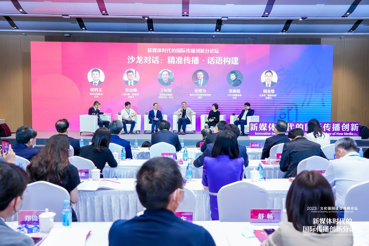 2023年6月7日至8日,首届文化强国建设高峰论坛在深圳举行。中共中央总书记、国家主席、中央军委主席习近平发来贺信,代表党中央表示热烈祝贺。中共中央政治局委员、中宣部部长李书磊宣读了习近平的贺信并发表主旨演讲。中共中央政治局委员、广东省委书记黄坤明出席并致辞。全国人大常委会副委员长铁凝出席并发表演讲。张维为院长出席高峰论坛并在新媒体时代的国际传播创新分论坛上作主题发言和对话交流。