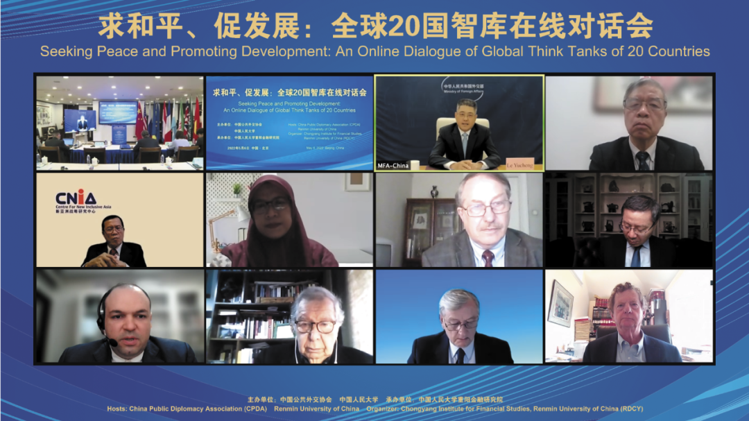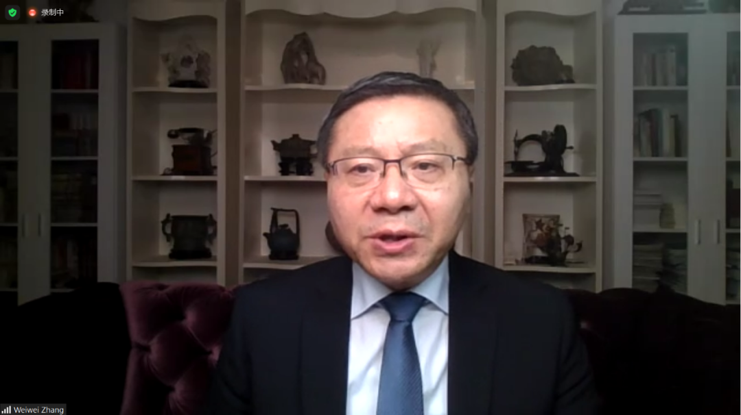 2022年5月6日晚,复旦大学中国研究院院长张维为教授应邀通过视频参加了“求和平、促发展:全球20国智库在线对话会”。